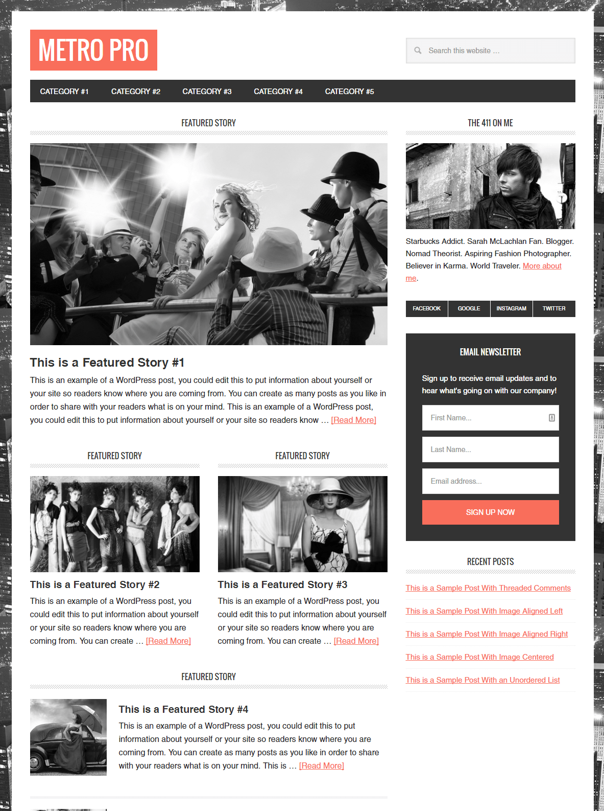 • If you’re looking for a more bloggy type layout then Foodie, Metro and Lifestyle Pro are all great looking, easy to use Genesis themes and can be found on StudioPress.com.